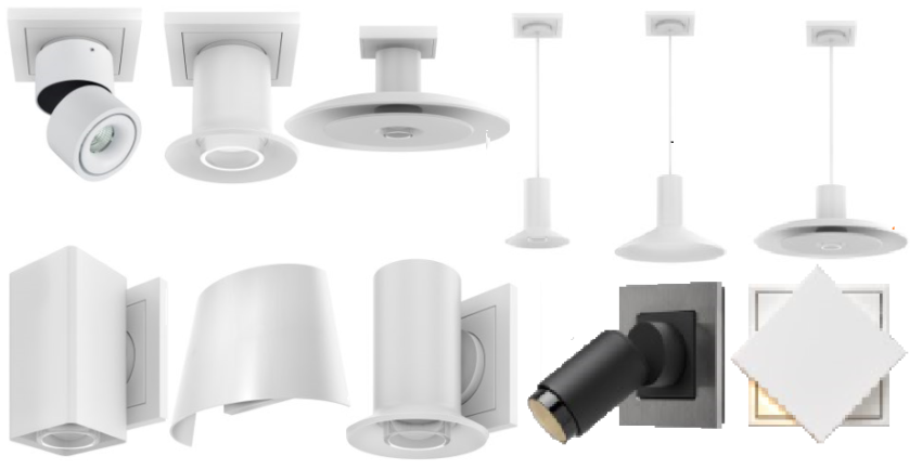 Na ilustracji nad tekstem pokazany jest przegląd lamp tego systemu. Lampy sufitowe mogą być sztywno przymocowane do gniazd, ale mogą też być wiszące. Asortyment i kolorystyka stale się zwiększa.
